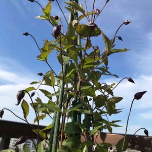 クレマチス アリョヌシッカが 鳥の口ばし🐤の様な蕾から開いてくれました。 今年は早くから伸びてくれていた😊