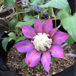 クレマチス リトル・ボーイ 開きました。 長〜い間咲いてくれます。 優秀なボーイ! 背が高くてポテチン💦、倒れないように!