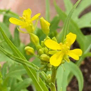 水菜♪ 種から育てた水菜が食べ頃になったので根本から収穫して美味しく頂きました😋🎶 その後も切り株(?)から新しい葉が20㎝程に成長していつの間にか蕾まで✨✨ 今日のあたたかい日差しで咲き始めました🥰 蕾が沢山、これからも楽しみです💕 種が取れたらまた来年も楽しめるかな😊