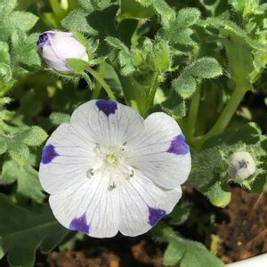 ネモフィラ・マクラータ♪ 風に揺れて楽しそうに咲いています🥰🎶 蕾も沢山✨✨