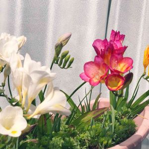 フリージア♪ 白、赤、黄色に続いて 今年最後の薄紫✨✨ 初めて育てたフリージアのミックス球根(何色が咲くかお楽しみ)は 強い風雨にも耐えて沢山の花を咲かせ楽しませてくれました🥰🎶 次は 球根が楽しみ💕 我が家の定番の1つになったら嬉しいです🤗🎶