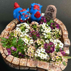 アリッサム畑🤗♪ スイートアリッサム♪ 娘が修学旅行のお土産に買って来てくれた灰皿にアレンジしてみました😊🎶 ピンセットを使いながらやっとやっと😅💦 🏷2021シーサーの日 参加させて下さい🎶