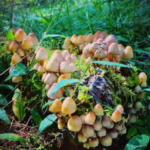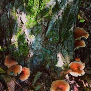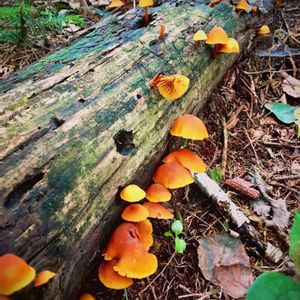 丸太とキノコ 3投目は群生している様子。 雨に濡れて色が綺麗だったので…😊