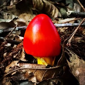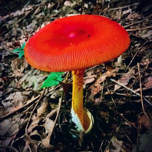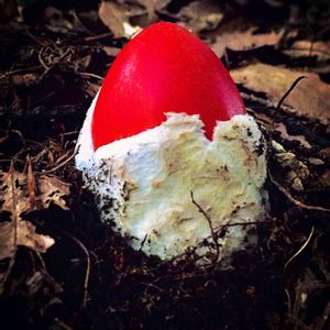 タマゴダケ(幼菌) 2 ひょっこり頭を出していました。 ここからかなりのスピードで成長します😊 赤い頭は森の中でとても目立ちます💕