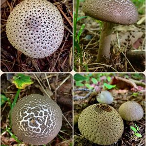 ホコリタケとヘビキノコモドキ おはようございます😃 キノコpicが貯まっておりまして、今朝はコラージュで3枚😊 左上:ホコリタケ(真上から) 左下:ヘビキノコモドキ(真上から) 右上:ヘビキノコモドキ(横から) 右下:ホコリタケ(横から、8/28投稿)
