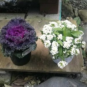 おはようございます😃 ①ハボタンとアリッサムを連れて帰りました😂 ちょっと前まで猛暑猛暑と言ってたのに もうハボタンの季節とは‼️ 季節の変化が早くてビックリです😳 ②今年お迎えしたホテイアオイ。 もう咲かないのではと諦めてましたが 今週になって突然この状態に😳😲 果たして、この寒さの中で咲くのか 見守っていきたいと思います☺️ 素敵なハロウィン🎃をお過ごし下さい😊👍