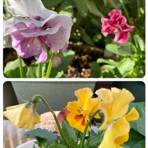 ☆庭のお花達☆ ❶シェルブリエ(3色) 昨日、お連れしましたー ❷↑パンジー きれいにまとまるラムレーズン 鮮やか色に惹かれお連れしまし ↓八重咲きパンジーシュシュ 色もお気に入りで 名前も可愛いねー😆😅 ❸↑葉牡丹デュエット ↓パンジー2色
