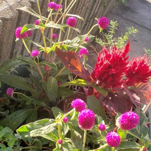 こんにちは!かなり久しぶりの投稿です! 今年の夏は暑すぎて長年育ててきたイチゴ達は全て❌ 夏野菜もあまり収穫できず惨敗でした💦 秋!大好きな『センニチコウ』 『ケイトウ』を迎えました★ 玄関アプローチへ飾ろ♪色が好き!