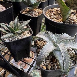 今日は日中晴れで夕方から曇る予報☀️☁️ 予想最高気温26℃ いつものホムセン巡回にて気になったので、ついお持ち帰り…😅 右のヘクチア ラナータは、ディッキアに激似で同じくパイナップル科ですが、アガベのように花が咲くと枯れてしまうらしいのと、ユーフォルビア多肉のように雌雄異株なのが大きな違い👀 ただ、育て方としてはディッキアと同様で大丈夫みたいなので😁 左のアガベは葉が2本折れてて、売り場で植っていたポリポットの底穴から根を出していて窮屈そうだったので救出の意味合いが強いかも🫡 何より好きな笹の雪系😁 数日経ちましたが葉の根元がいい感じに青々してるのでとりあえず一安心🥹
