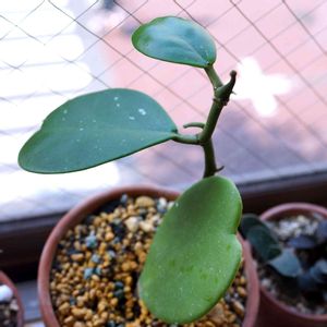ハートホヤ(ホヤ ケリー) ハート形の葉っぱのホヤです。 挿し木していたチビ苗が今朝咲いている事に気付きました☺️ 葉の裏に蕾があったらしく、見つけた時はすでに蜜がすごいことに‼️🤣