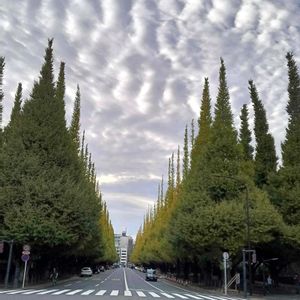 今日の外苑 銀杏並木 少し黄色くなってきました💛 そして今夜は13夜だそうです お月見🎑