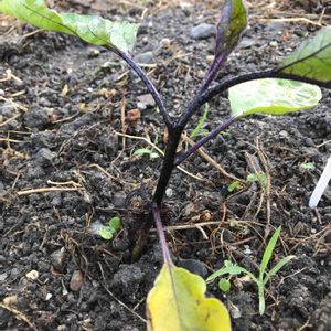 独り生え茄子🍆 昨年秋に畑の脇の駐車場に抜いて置いていた茄子の苗から芽が出たとしか思えない⁉️ 気がついて10日余り、雑草の中に埋もれつつあったので周りの草を引きました✂️ 下手に移植するのも怖いのでこのまま肥料をあげて育ててみようと思います✌️ 明日からしばらく雨☂️ 風も強く吹くかもしれないから添え木もしてあげないと... 茄子の実がなるといいのになぁ🍆🎶