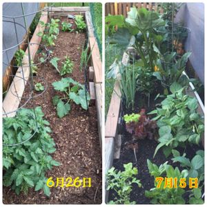 家庭菜園、3週間で大きく育ちました。 ズッキニーの巨大葉っぱ、凄い勢いで大きくなってます😂