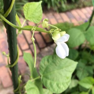 インゲン (プランター) 種まきからやっとお花が咲き インゲンの赤ちゃんが 大きくな〜れ!