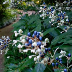 ヤブミョウガの実が鈴なりです。良く見ると🟤🟢🟣3色です。
