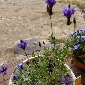 寄せ植えしたハーブ🌿寒さに負けずにレースラベンダー💜が急成長してお花が綺麗✨😍