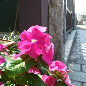 北国街道の道すがら、ニチニチソウがその案内役を買って出てくれたようです😸