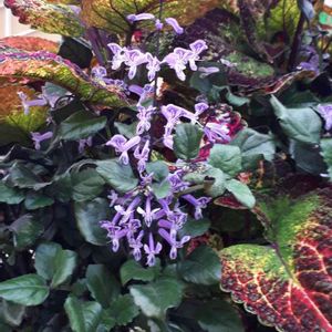 プレクトランサス💜 濃い緑の葉に薄紫の花 大好きな花なんだけど、 冬越に自信がなく 今のところ 買わずに眺めるだけ😌 ここでは、光に透けて薄紫が キレイでした。