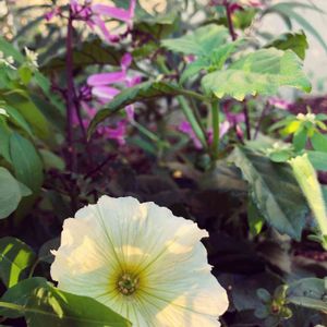 私が一目惚れしましたが、 どうやらお花が美味しい?らしく見たことない綺麗な鳥🐦さんが、一生懸命食べてました! このpicは食べられる前です。 素敵な紫に光沢のある葉っぱが魅力的な娘なんで、室内に救出しました。頑張って冬越ししてね❤