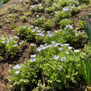 今日のお花 毎年零れ種からのネモフィラ。今年も咲き始めました💙 1周年バラと夢CLUBプレ企画 盛り上がっていますね❤️ どなた様も、あまり夜更かししません様に