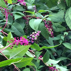 あらゆるところで 力強く生育しています🎶 草丈150cmほど 茎が太い💦 秋にブドウ🍇のような 房状の果実を付け 熟すと黒くなります⚫️ 全草有毒植物⚠️ 洋種山牛蒡(ようしゅやまごぼう) 別名 アメリカヤマゴボウ ヤマゴボウ科