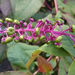 続けて、キモカワ系です💓 ヨウシュヤマゴボウ~ ちょっと葡萄🍇似で美味しそうにも見えます、でも‼️有害植物です⚠️ 熟す前の、ピンクと淡い緑の実がポップで萌え萌え💞