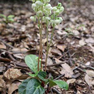 イチヤクソウ(一薬草) 英名ウインターグリーン 竹藪の中に自生しています 菌根植物(根毛が発達せず、内生菌根と 共生することで栄養を得る) 全草が薬草になるそうです 2cm位の花でうつむきかげんに咲いています😄