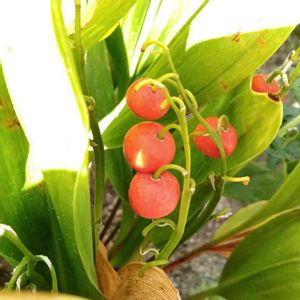 地面を見ていたら赤い実発見😳 スズランの実じゃないですか😉 なかなかキュートじゃないですか💕