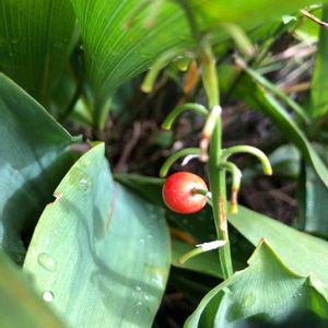秋に見られるスズランの実。 咲いたら必ず見られるというわけじゃないので、赤い実が見られたらラッキーと思っています。