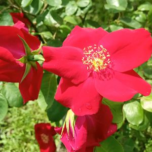 つる薔薇の 真っ赤な薔薇 ドンファンもツタと共に塀を登ってきました✨ ツタが延びすぎないように注意⚠️しないと(^^;酷いことに…😀