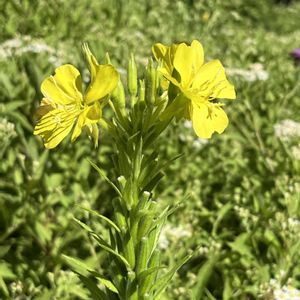 ビタミンカラーの黄色 何だろう?雑草? 背丈が1mぐらいになってます。 調べてみるとメマツヨイグサみたいです。道端や荒れ地などでも咲きま す。 夏の夜の花の一つ‼️ ちょっと観察してみようかな?🌼