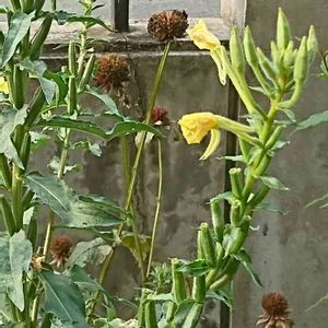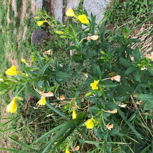 160センチ以上の高さの先に、小ぶりの黄色いお花🌼 名前がわかりません。 どなたかわかる方教えて下さい。 お二方に、メマツヨイグサと教えていただきました。ありがとうございます😊 嬉しい💕