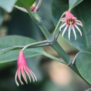 オヒルギ 千葉市花の美術館温室内に ユニークな花姿😃 マングローブ林を構成する主な植物の一つ 花は赤い萼が目立つことから「アカハナヒルキ」とよばれ その姿は、まるでタコサンウィンナーのようです 《標識より》 ヒルギ科 もう少し開いたところも見たかった💕 🏷真っ赤な火曜日 に参加させて頂きます