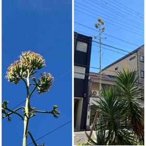 京都三条通に数十年に一度咲くリュウゼツランの花火のような花が咲いていました🌵😍✨ 高さ3メートル以上あるので良く見えなかったです😂
