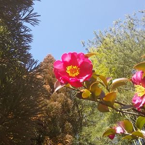 椿でしょうか…似た花も在りますね。山茶花かも😅
