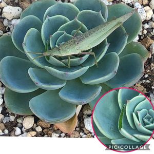 嫌いな人ごめんなさい🙏 バッタに多肉食べられたー😱 ていっ!=(´Д`)ノ (`∀´)=