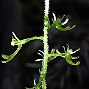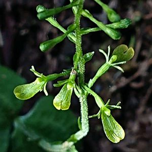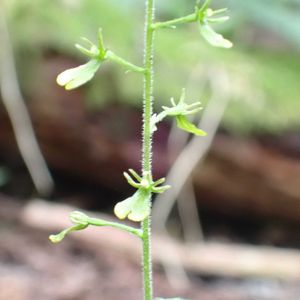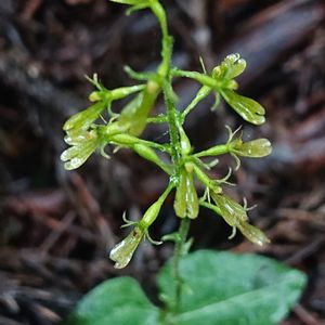アオフタバラン咲いています。薄暗い林床にひっそりと咲きます。あまりに小さすぎて、私の一眼では限界でした。私の住む山梨ではそれなりに個体数はありますが、多くの都道府県で絶滅危惧種指定されています。日本固有。