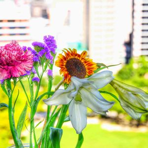 ひまわりを散らしてしまった(泣) でも別色のケイトウさんが仲間入り(^^) #一人一花 #花の日チーム #フラワーク #一人一花運動@福岡市