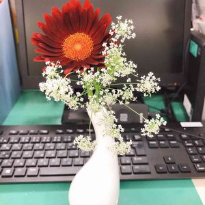今日のヒトハナ❣️ ホワイトレースフラワー 先週のガーベラもまだまだ元気😊 #一人一花 #花の日チーム #フラワーク #ハナノヒ