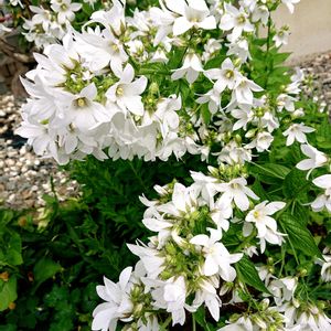 6月13日 ☔️ ホタルブクロ 清楚 純白 同じ 所から 何個も蕾 お花が終わると また 2番花 頑張るお花 ꕤ︎︎...🐌 🏷️白い貴婦人✨
