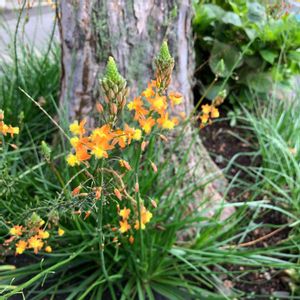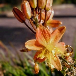 今日の花散歩。 ハナアロエ。 別名:ブルビネ・フルテスケンス ユリ科、南アフリカ地方原産