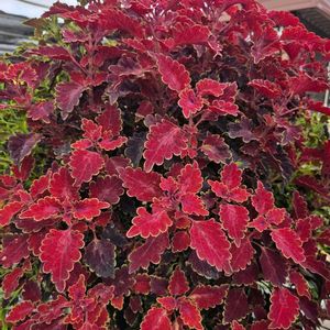 街中散策で 縁に斑が入ったオシャレなコリウスに出会いました。 コリウスはシソ(紫蘇)に似た花を咲かせますが どちらかと言うと花は地味で カラフルな葉っぱを楽しむ観葉植物です。 葉の美しさからニシキジソ(錦紫蘇)とかキンランジソ(金襴紫蘇)の和名でも呼ばれます。🤗✨ 東南アジア 熱帯アフリカ オーストラリアなど原産。 シソ科コリウス属の1年草。