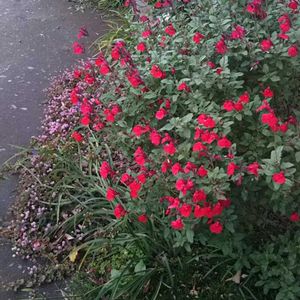おはようございます😃 見切り品だった 5年目のチェリーセージ🍒 今シーズン初めて『ほぼ満開』になりました😊 いつもは春先に咲き始めてから 6月頃にも『ほぼ満開』になりますが 今年は6月に季節外れの猛暑日が続いた為に 咲くのを止めて早めの夏休みをしてしまいました💦 今年はいつも以上に休み スタミナは有り余ってるはずなので 長く咲いてくれるでしょう😅 埼玉県では例年より1ヶ月早く インフルエンザの警報が発表されました⚠️ 学級閉鎖が相次いでるようです❗️ 皆様もお気をつけ下さい⚠️