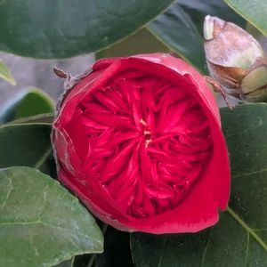 ヤブツバキ(藪椿) 真っ赤な藪椿🩷 緑の葉っぱから覗く お花♪♪ 目を引く凛とした姿