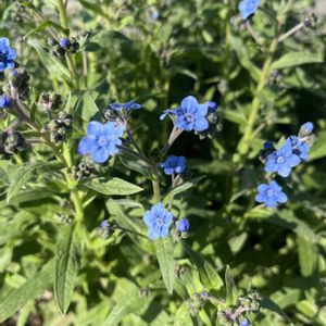 1年8ヶ月ぶりに投稿です( ´•ᴗ•ก ) お庭いじり、続けてはいましたが、この度やっと投稿できる時間の余裕が、、ん〜まだないけど笑 自分なりの庭づくりの記録として残していきたいなと改めて思っているところです( ᵒ̴̶̷̤ ᵒ̴̶̷̤ ) お隣さんが建ったので、まずはその境界線にフェンスを作る。 あとは玄関横に花壇、ウッドデッキ、パーゴラ、、と夢だけはいっぱい( ᐛ 🫶) これらは家計とも要相談です(*˙ノ(˙꒫˙*) 色んな方々のかわいいお庭を見ては、これもいいな、あれもいいなと妄想ばかりがどんどん広がっていって、辿り着きたい方向を見失ってしまいがちですが、結局のところ、自分の好きな植物たちが目の前に広がってくれていて、自分が楽しんでる事が1番ですよね! きっと家族も幸せ笑(傲慢) この夢、5年計画で進められたら上出来です🙌 前置きが長くなりました(;´-∀-`)ゞ 【シノグロッサム マリンブルー】 昨年のこぼれ種から。 なんとも言えない色味のブルーで、大好きです🩵💙 息子と、この青キレイだね〜と選んだお花だから、また大きくなってくれて嬉しいです🩵💙 この株以外にも、あと3株出てきてくれました(爆°∀°笑)