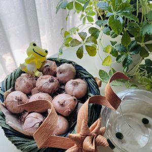 🏷️カエル仲間 🏷️キャラクターピクルス 🐸🧅✨🌱 🧺 🐸🐸🐸 ◉ ◉ ( ○ )玉ねぎじゃないよー ⬅️ 水も土も要らない🧅 サフランでぇ〰︎すぅ💕 クラフトバンド🧺編み 指の力が必要🖐️腫れてる💦 端処理までの余力なくて、 鳥の巣🪹👈🤣 モチーフ🏵️付けてみた あれ⁇何かに似てる‼︎ ドデカ ラーメン‼️🍜👈🤣 ↗️ シュガーバイン🪴 元気モリモリ🌱✨ ↘️ まりも🟢🟢 水替え🚿チャプチャプ 夏場は冷蔵庫保管