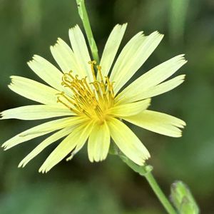 今日のお花🌼アキノノゲシ🌼 1️⃣2️⃣3️⃣4️⃣秋の野芥子 キク科 アキノノゲシ属 日本全土の日当たりの良い草地や荒地などに生える一年草〜越年草 花期は8〜11月 高さは0.6〜2mで、青空に高くそびえ立っている姿は清々しいです 花の大きさは約2cmで丸い形がかわいいです 茎を切ると白い汁が出るので、ハルノノゲシとともに乳草(チチクサ)と呼ばれる 薄黄色の舌状花のみからなる花で、昼に開き、夜には閉じる 花後の総苞は下部が膨らんで紫色を帯びる 5️⃣ハルノノゲシ(春の野芥子)(野芥子) 秋の野芥子が春の野芥子に似ていて秋に咲くという名前の花ですが、春の野芥子とは全く花の様子が違います 春の野芥子も10月頃まで咲いているので、両者が一緒に見られる時期があります 私的には、ハルノノゲシは葉にトゲトゲがありワイルドで男性的ですが、アキノノゲシは落ち着いた色調で繊細な感じで女性的に見えます