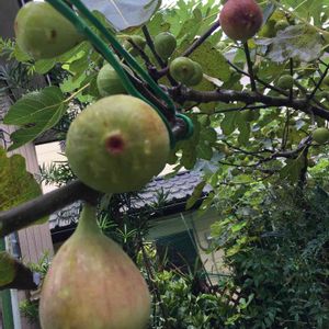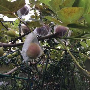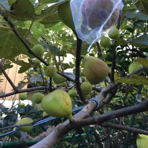 イチジク 熟してきたので鳥害対策の網を 被せました😅