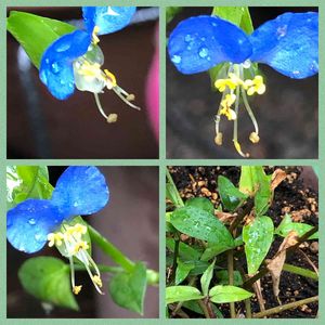 白花だったツユクサから 三つのお花が咲いています ただし 色が白から戻ってしまいました 環境のせいなのでしょうか? とてもショックです