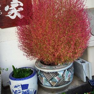玄関前の千日紅です✨ 秋も深まり花が少なくなってもこの花は良く咲いています。 他、先日のコキア真っ赤に色着いてきました。